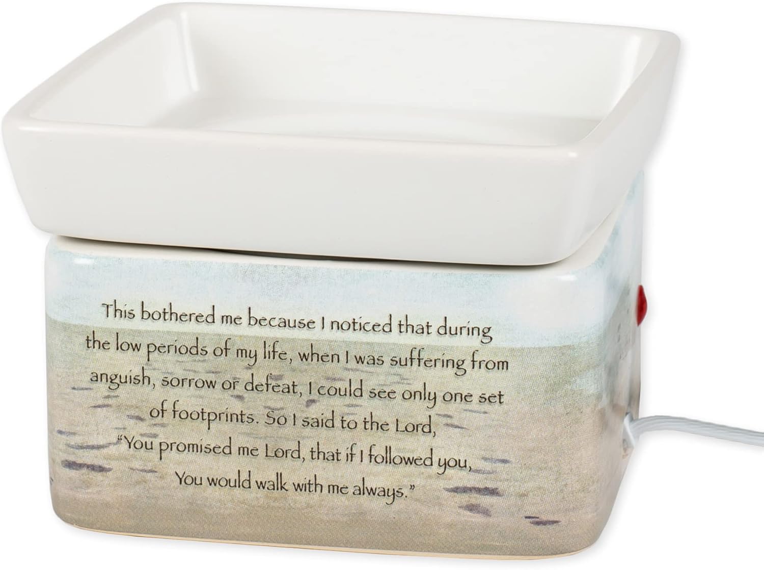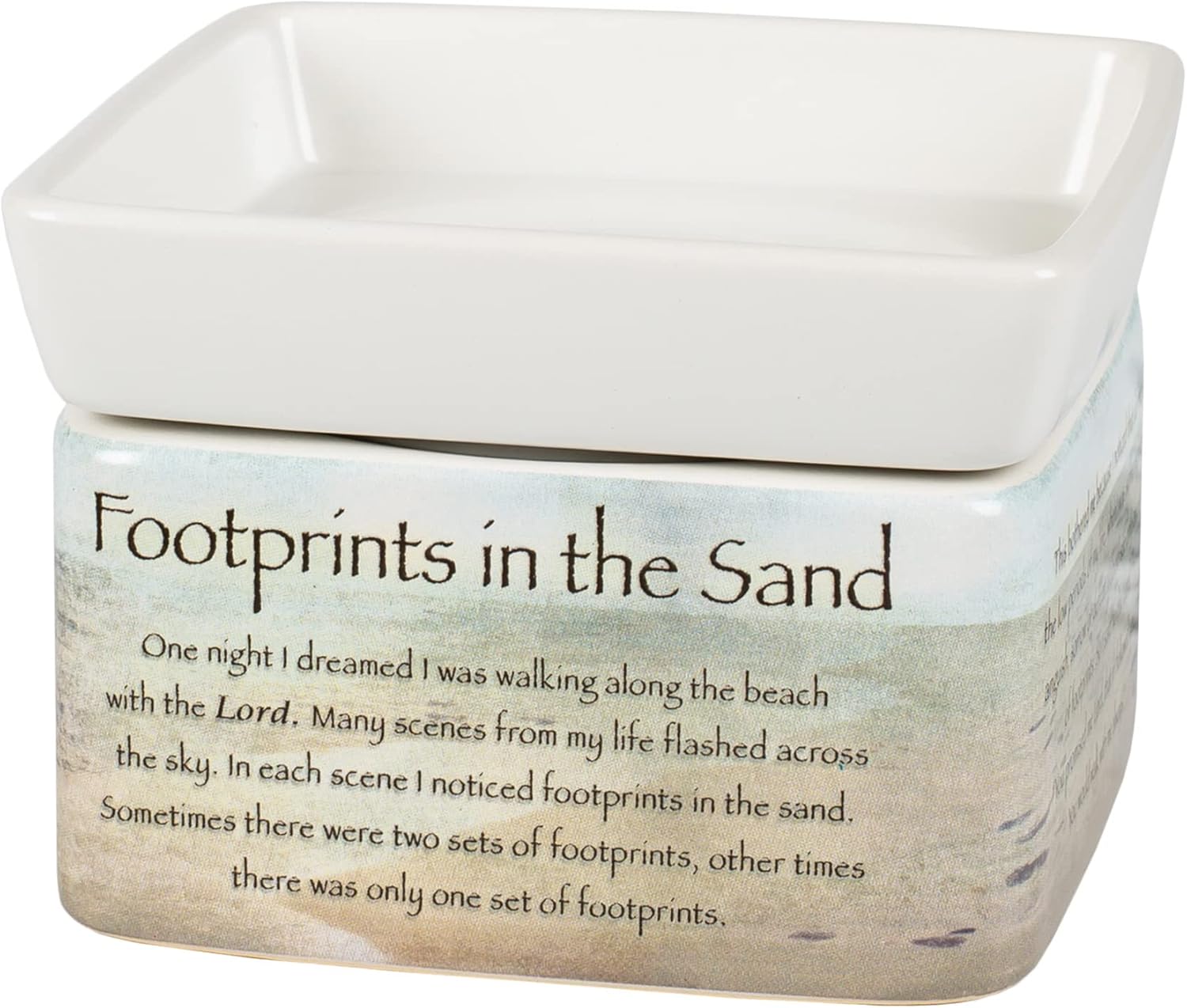 Elanze Designs Footprints in The Sand Ceramic Stoneware Electric 2 in 1 Jar Candle and Wax and Oil Warmer