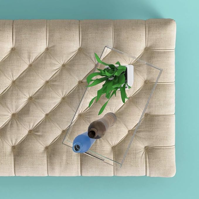 Clear Acrylic Serving Tray for Vanity, Bathroom, Ottoman, Desk and Décor with Handles (Rectangle, Large)
