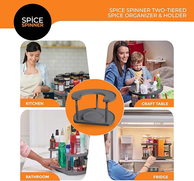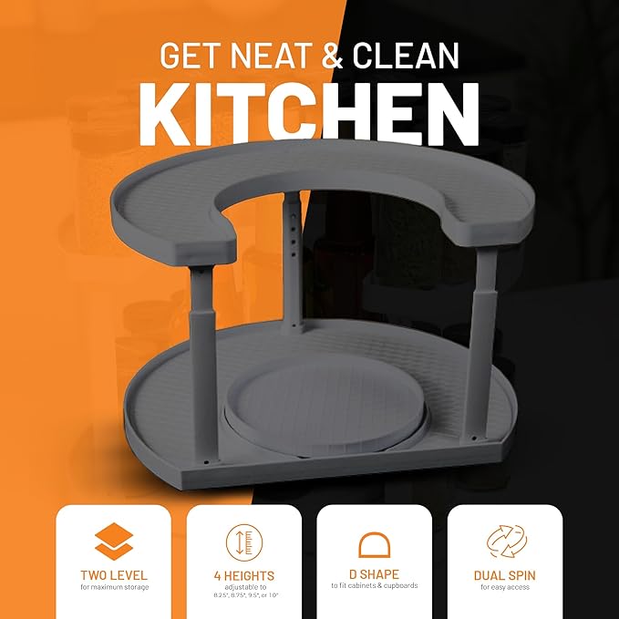 - Smooth 360° Rotation: Dual spinning trays allow easy access to every spice, seasoning, or jar—no more rummaging through cluttered cabinets.