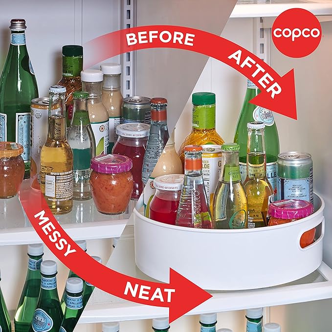 - EASY ACCESS: Smooth-glide Lazy Susan rotates so you can quickly reach what you need, and features handles for easy transport