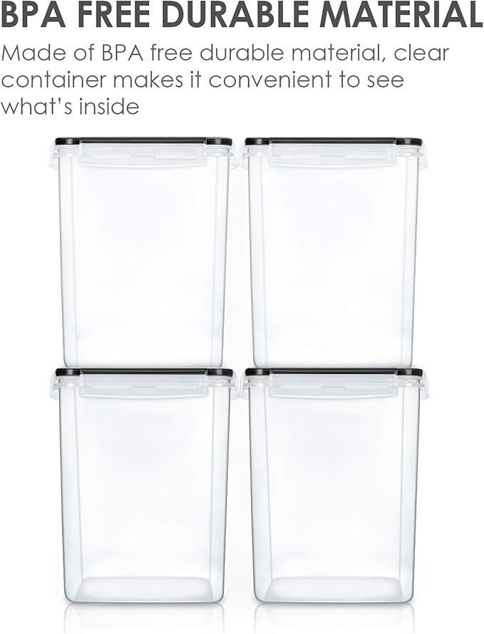 - Make a Huge Difference in Pantry Organization ---- If you already got tired of messy flour and sugar bags, then don't hesitate to choose our large food storage containers. These flour containers will make everything looks neat and in order. Come with 4 premium food storage canisters, 4 measuring cups, 24 chalkboard Labels, this container set will also be an ideal gift for any family.