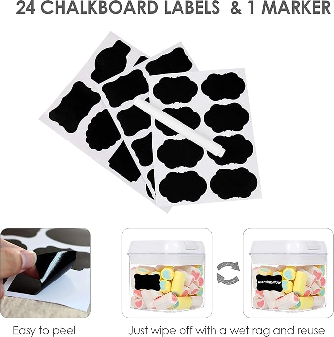 - Includes 24 reusable chalkboard labels to organize and identify contents