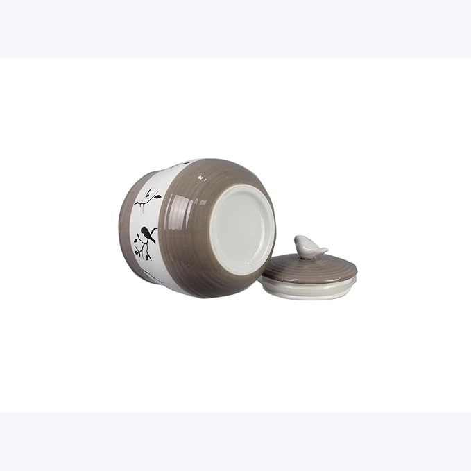 Young's Inc. 4 Pcs Set Botanical Ceramic Canisters- Storage Container for Kitchen and Bathroom - Beautiful Home Decor Accent to Store Food, Coffee, Tea, and More - Brown, White