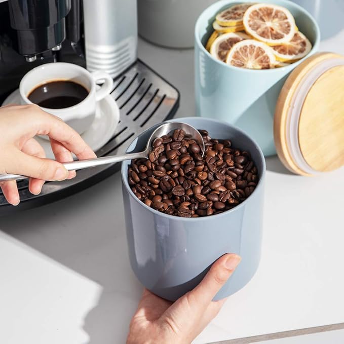 - Easy to Store - Fluid maximum capacity is about 39fl oz/1106ml. Suitable for coffee bean, flour, sugar packets, tea bags, spice, sourdough starter.Due to the different density of the particles, the solid storage capacity may not reach the maximum, which exists deviations.