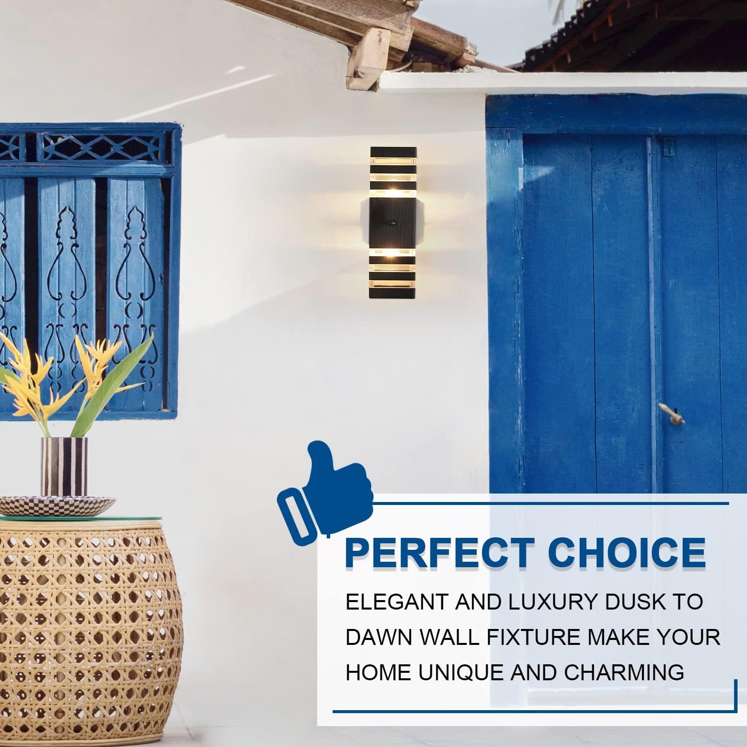 Dusk to Dawn Sensor Outdoor Wall Lights Up Down Porch Lights Modern Exterior Light Fixtures Photocell Waterproof Black Aluminum Housing for Front Porch, Patio, Garage (Use Two E26 Bulbs)