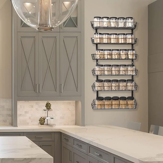 SWOMMOLY Adjustable Wall Mount Spice Rack, 6-Tier Dual-use (Multi-use) Organizer, Black