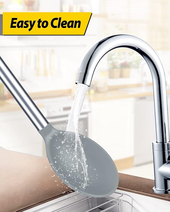- More Safe and Healthy : Our silicone spoons are made of food-grade silicone, free of BPA;Even at high temperatures, there is no need to worry about melting or deforming;And the soft silicone head won't scratch the coating, it can better protect your pot