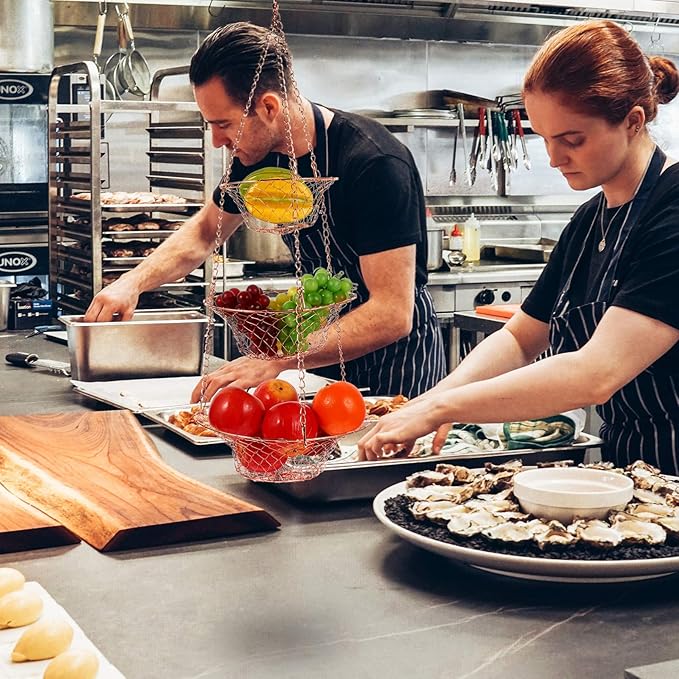 - Metal hanging fruit basket 3 tier rustic hanging baskets for plant holder vegetable- large fruit baskets for kitchen boho decor