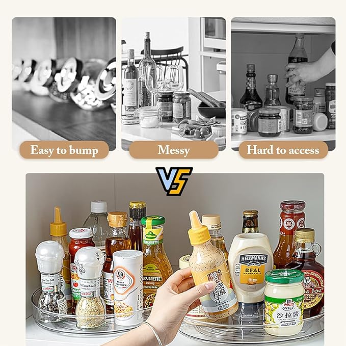 - 3. Maximize Space:This rotating Lazy Susan will allow you to maximize valuable storage space and keep your stuff within easy reach. Say goodbye to messy kitchens and cabinets, make better use of every space in your home. Clean, organized life starts here.