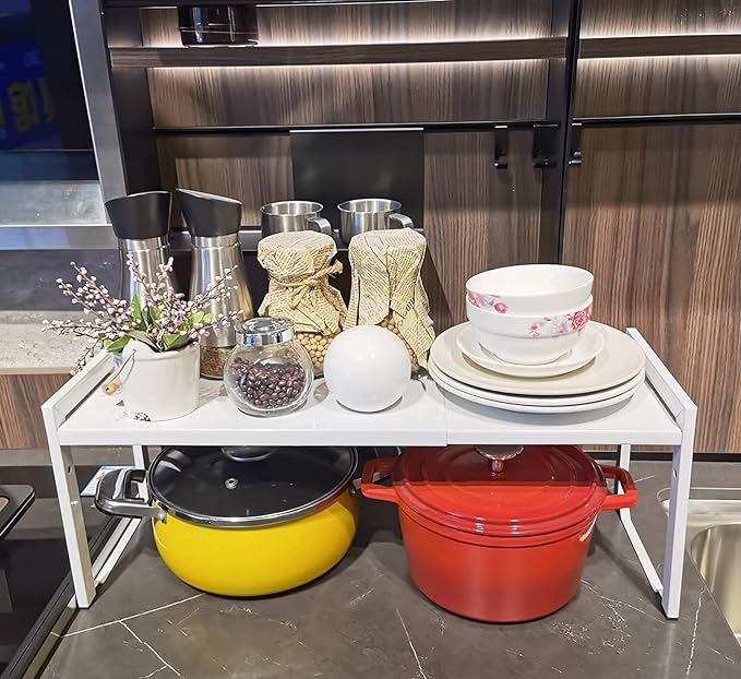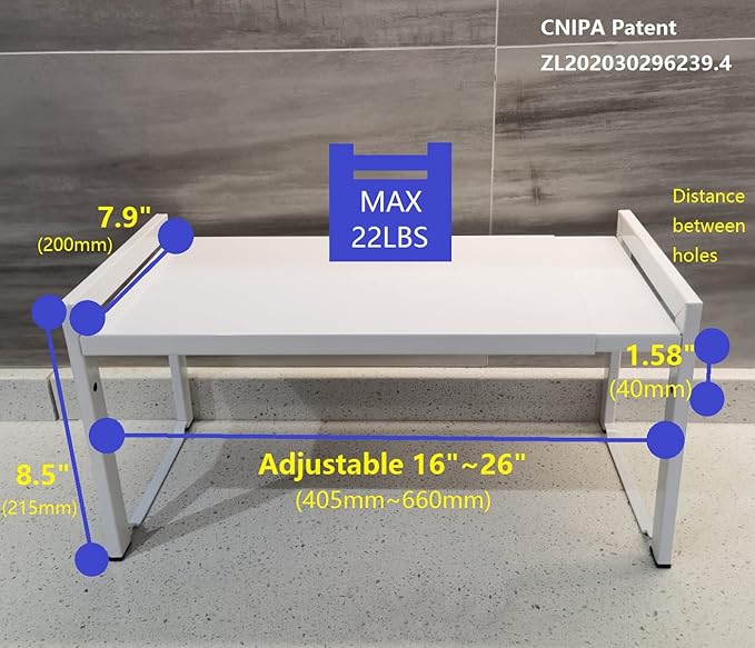 - Adjustable and Expandable Design: Versatile shelf adjusts from 16 - 26 inches (L), 7.9 inches (D), 8.5 inches (H), with a maximum under shelf height of 7.1 inches, making it perfect for maximizing space in kitchens, offices, bedrooms, or any room in need of organized storage