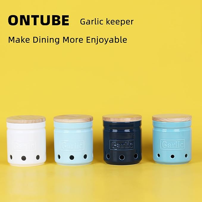 - FASHIONABLE APPEARANCE : This Garlic Keeper adopts a straight barrel design, combined with a cover to make its appearance look more fashionable. There are 5 holes on the porcelain, which can keep the garlic ventilated inside