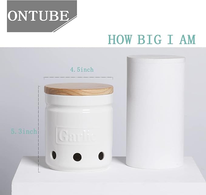 - HUMANIZED DESIGN : ONTUBE Garlic Keeper's size is 4.5"Lx4.5"Wx5.4"H which can easily hold 3 to 4 heads of normal size garlic. Because it is deep enough, it can even hold 2 potatoes