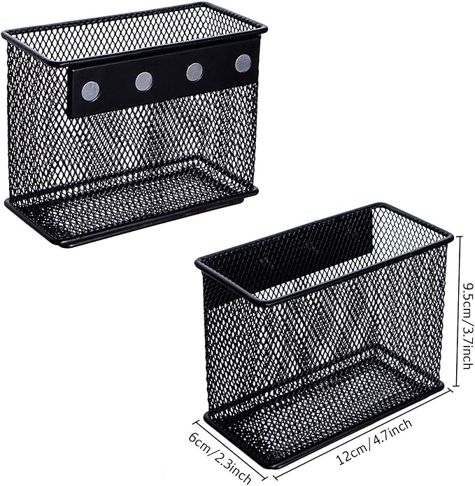 - Strong Magnetic Design: Mesh metal pen marker holder will stable glued on whiteboard. With 5 extra strong magnets, even heavy items like staplers, scissors and calculators won’t phase their intense gripping power.