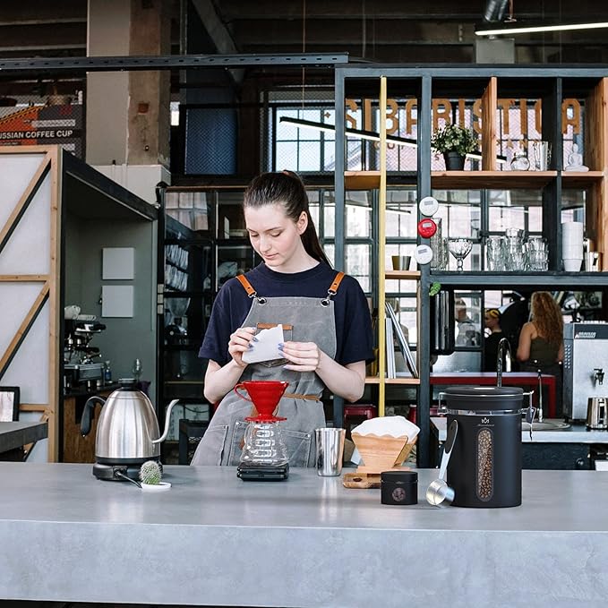 - 【Date tracking and airtightness】The coffee canister is designed with a lock, the lid is equipped with a silicone gasket, and there is a date tracking wheel on the top of the lid. The shelf life can be set when the coffee is loaded. The next time you open it, you will know how long it will be stored.