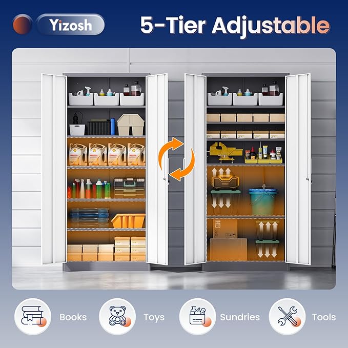 - 『PRACTICAL DESIGN』:Our tall metal cabinet equipped with lock and 5 adjustable shelves to provide adaptability and convenience. High-grade lock picking to secure valuables, two keys are included. Regardless of what your storage needs are, you have the ability to create a unique storage space to suit them.