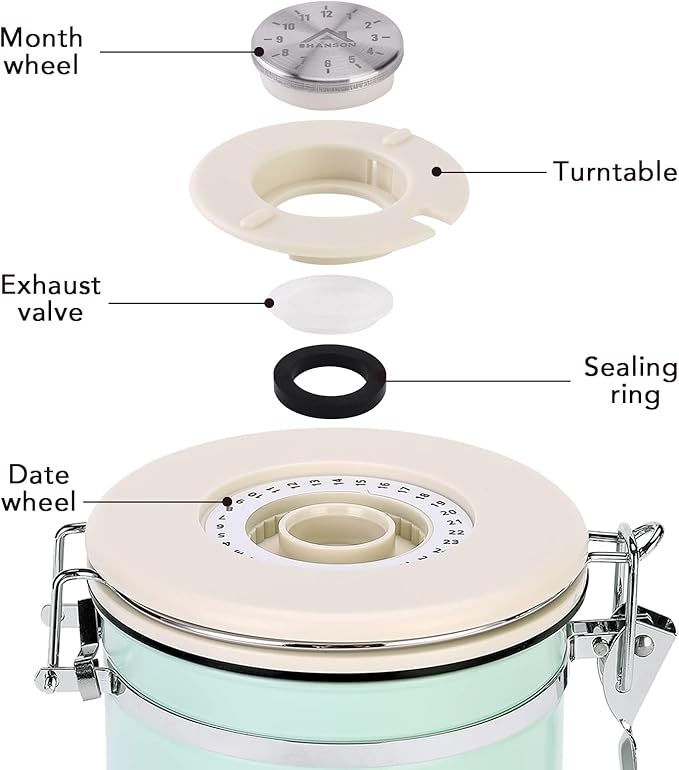 - 【BUILT-IN DATE TRACKER】A simple yet incredibly useful feature! The date tracker lets you monitor when the canister was last filled, helping prevent your coffee from going stale unnoticed. A stainless steel scoop is conveniently attached to the side, so you’re never left searching for a measuring spoon. Features a superior airtight seal for maximum freshness.