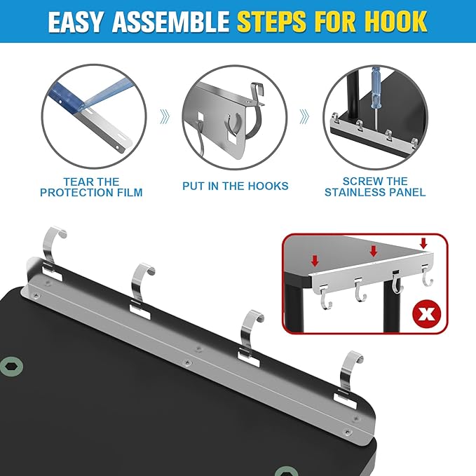 - MORE STEADY AND STABLE: 3 bathroom shelves adds 2 aluminum tubs make this small corner shelf more stable and durable, also these 5 plastic non-slip feet can protect your countertop surface better. 4 stainless steel hooks fit for keys, hair ties, jewelry and so on, keep them handy and out of the way.
