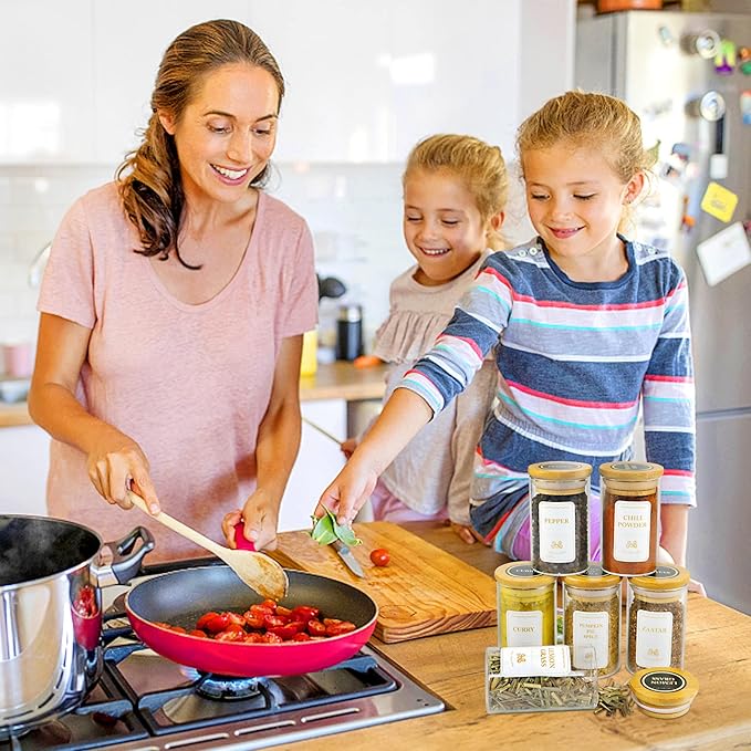 - 【Cute Bamboo Spice Jars Set】Get 35 durable 4 oz seasoning jars with 426 waterproof labels, a funnel, spoon, brush, and 2 pens. These small spice storage containers with labels and lids aren’t just containers—they’re tiny stylists, turning clutter into tidy charm.