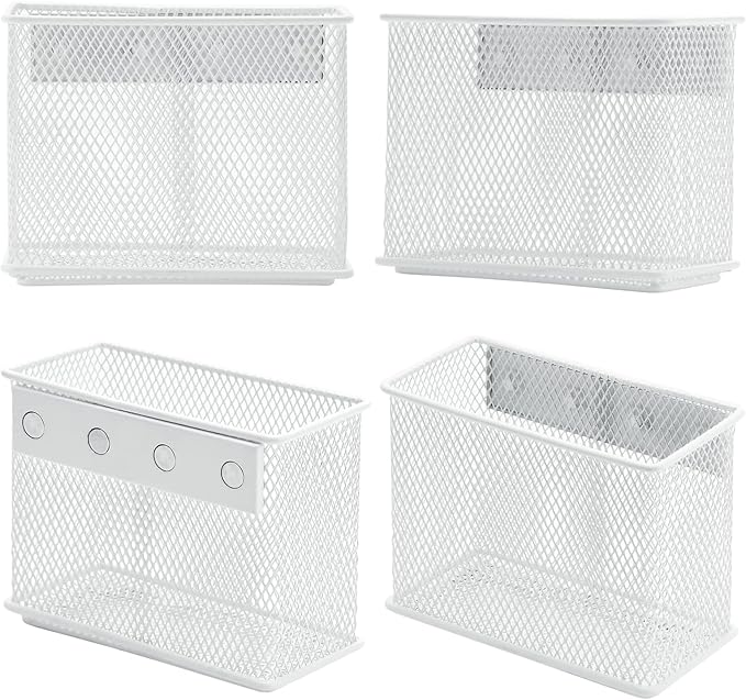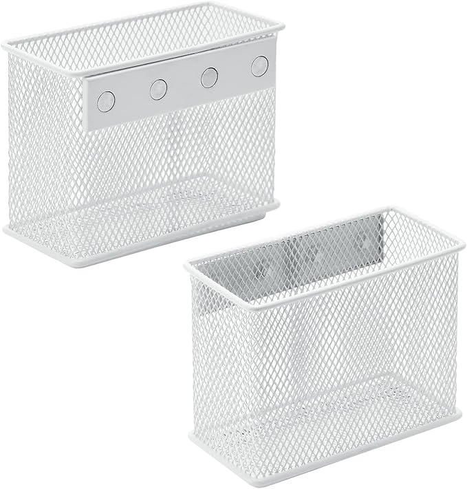dedoot Magnetic Pencil Holder, Locker Pencil Holder Strong Magnetic Holder for Whiteboard Marker, 4.7x2.3x3.7inch Black Mesh Magnetic Holder for Fridge, Sponge, Recipe, Beverage,White
