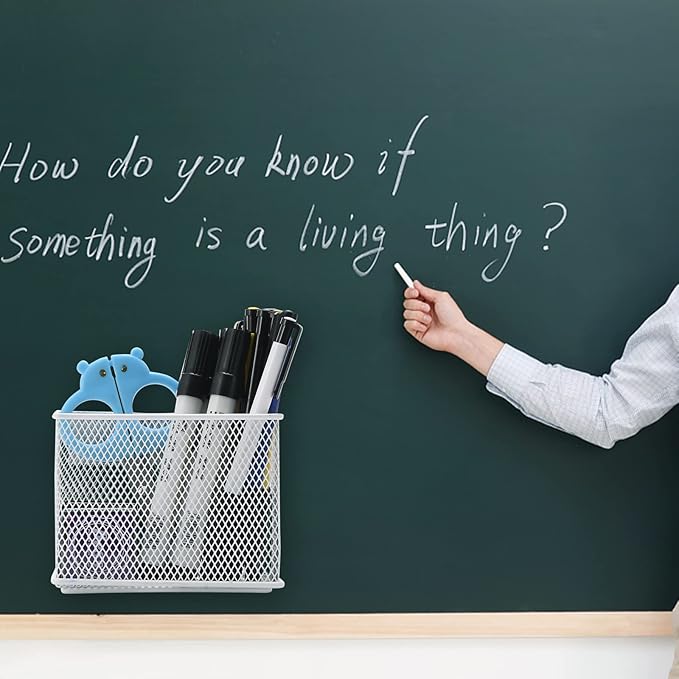 - Strong Magnetic Design: Mesh metal pen marker holder will stable glued on whiteboard. With 5 extra strong magnets, even heavy items like staplers, scissors and calculators won’t phase their intense gripping power.