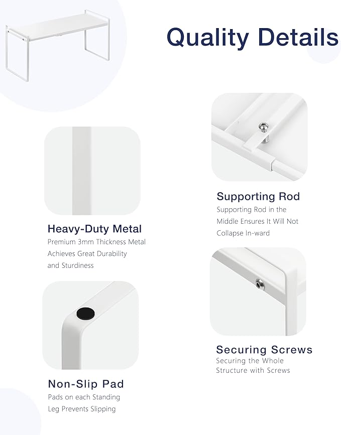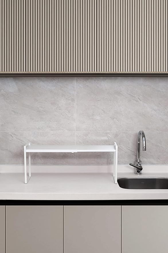 Nxconsu Expandable Cabinet Shelf Organizer Riser for Kitchen Pantry Cupboard Under Sink Countertop Home Storage Organization Rack Space Saver Freestanding Heavy Duty Nonslip Stackable White Large