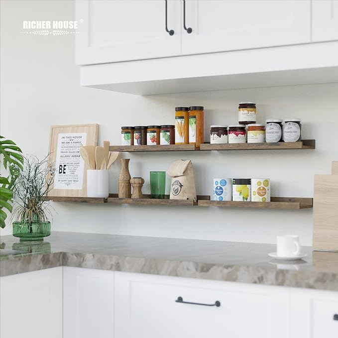 - Wide Application - These wooden floating shelves creates multi-functional storage space and various combinations to decorate your home. It can be spice racks to expand kitchen storage or bathroom shelves to add over-the-toilet-storage space for bathroom accessories or display shelves to show your plants, records, magazines, and trophy in the living room.