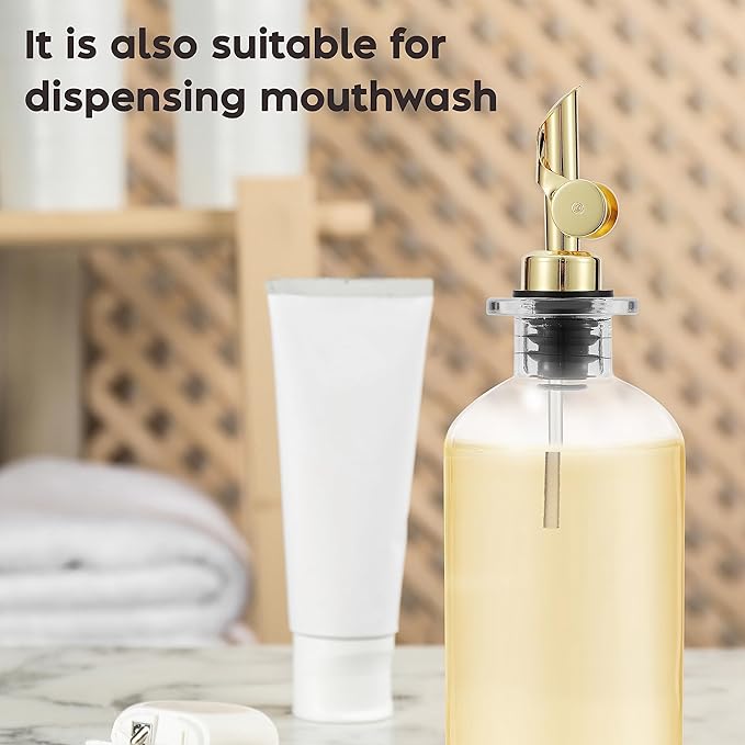 - Elegant & Aesthetically Pleasing — The minimalist and class design makes this small olive oil dispenser bottle the boost of elegance that your kitchen needs. Enjoy the modern feel of glass and gold plated stainless steel every time you cook.