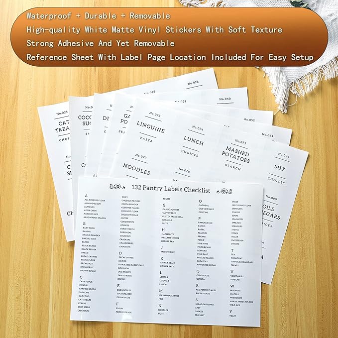 5 Pack Glass Jars with Bamboo Airtight Lids - Stackable Food Storage Containers with 132 Pantry Labels - with Wood Lid for Candy, Cookie, Rice, Sugar, Flour, Pasta, Nuts