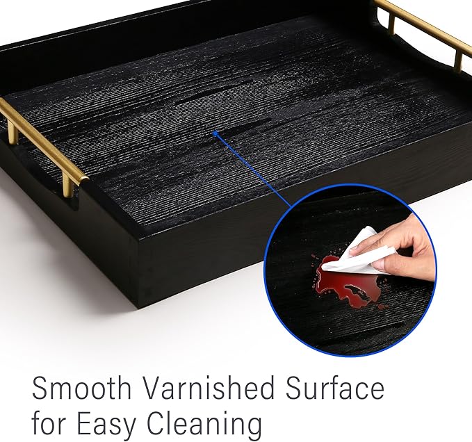 - Versatile & Practical: Our black wood tray can be used as an ottoman tray, breakfast tray, food tray, serving platter or lap tray; you can use it as a catch-all organizer for odds and ends, as a countertop centerpiece with candles, flowers or other home décor
