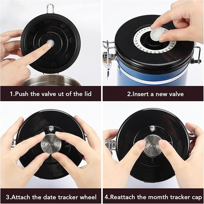 - 【TWO EXHAUST MODES】The canister features a CO₂ valve system and a silicone seal to lock in freshness and keep out moisture and air. A silicone gasket around the edge of the lid ensures an airtight seal when the lid is closed. Storing your coffee beans in this well-designed canister helps extend their freshness and ensures that every cup, even weeks later, tastes as good as the first.