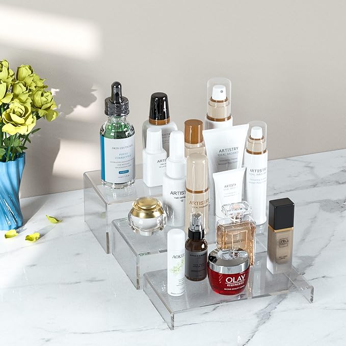- Wide Application: The acrylic display risers can be used for so many items display. It can be used for Amiibo Funko Pop Figures collectibles, toys organizer, cupcake stand for your home or party. It can be used for displaying perfumes, cosmetics, bags, shoes, sun glasses, jewelrys, wallets in retails or vendors.