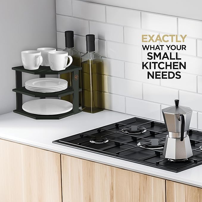 - SMART KITCHEN ORGANIZATION: Designed as a corner cabinet organizer, this 3-tier rack fits in cabinets, on countertops, or pantries for easy access and clutter-free storage.