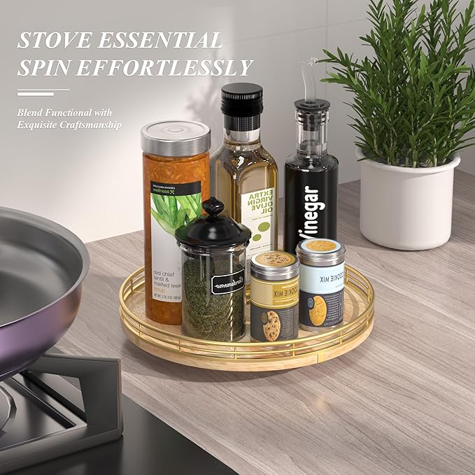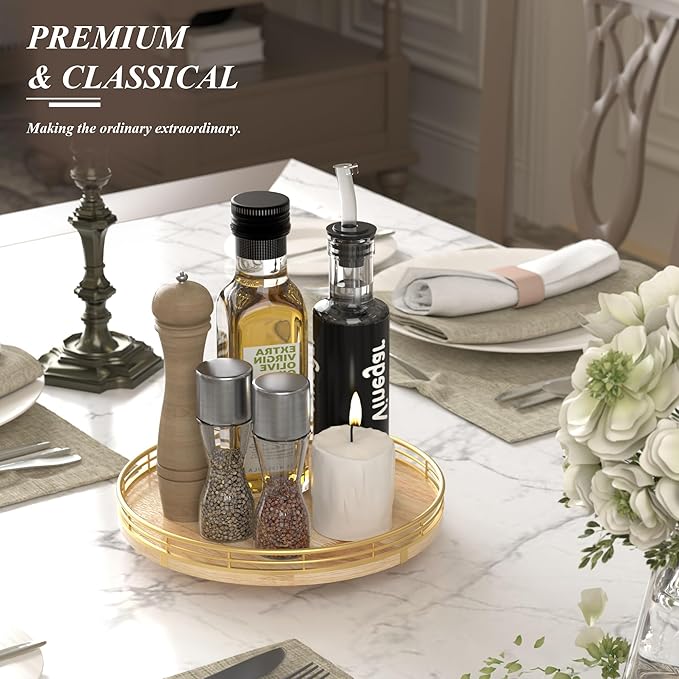 - πππππππππ πππ:This lazy susan is enough to be used nearly anywhere, perfect in the kitchen, cabinets, dining room, office, etc. on your kitchen or dining table for organizing condiments, napkins, decor, candles. Easily reach all your medicine, spices, canned goods in your pantry. Next to your stove, hold all the essentials essences, bowls, greenery, and a butter dish. Good idea for the office desk and craft room to organize. Keep your coffee stuff perfect at your coffee station.