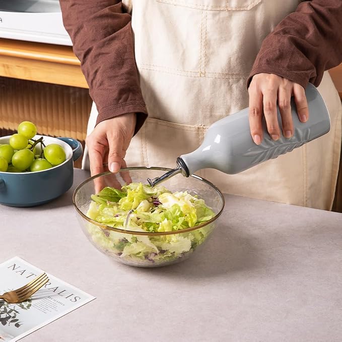 Sweejar Ceramic Olive Oil Dispenser Bottle, 20 Oz Relief Opaque Oil Cruet Protects Oil To Reduce Oxidation, Suitable for Storage Oil, Vinegar, Soy Sauce, Coffee Syrup, Liquids, Set of 1 (Gray)