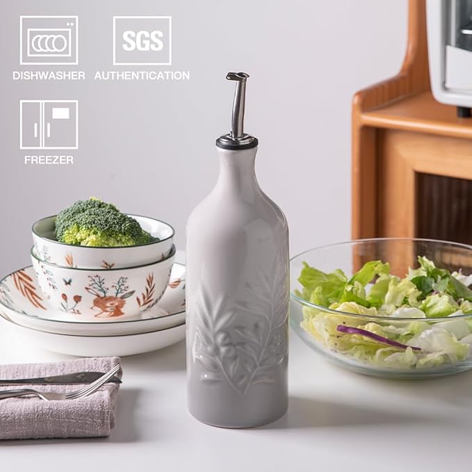 Sweejar Ceramic Olive Oil Dispenser Bottle, 20 Oz Relief Opaque Oil Cruet Protects Oil To Reduce Oxidation, Storage Vinegar, Soy Sauce, Coffee Syrup, Liquids, Set of 1 (Gradient Fog Gray)