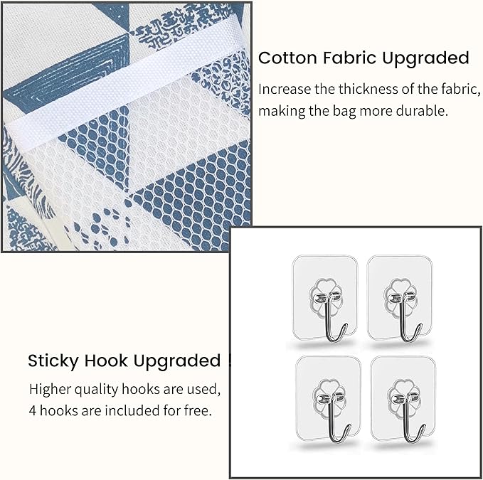 - 【Upgraded Material】We had upgraded the Cotton Linen Fabric and sticky hook quality, making the wall storage bag more durable to hang. Its inner with waterproof type coating, hanging pockets can be used to store items in the bathroom.