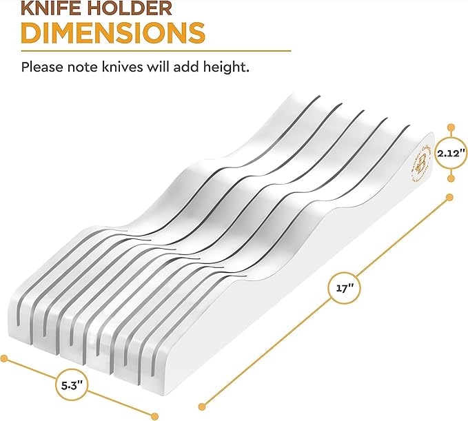 - ORGANIZES: Enjoy the results of owning this knife drawer organizer — your utensils drawer will always look great. You can see and access any knife easily.
