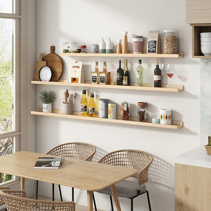 Picture Ledge Shelf for Wall, 48 inch Solid Pine Wood Nursery Book Shelves 2 Packs, Floating Ledge Shelves for Kids' Room Bedroom Bathroom Living Room Photo Frames Office Nursey Wall Decor, Natural