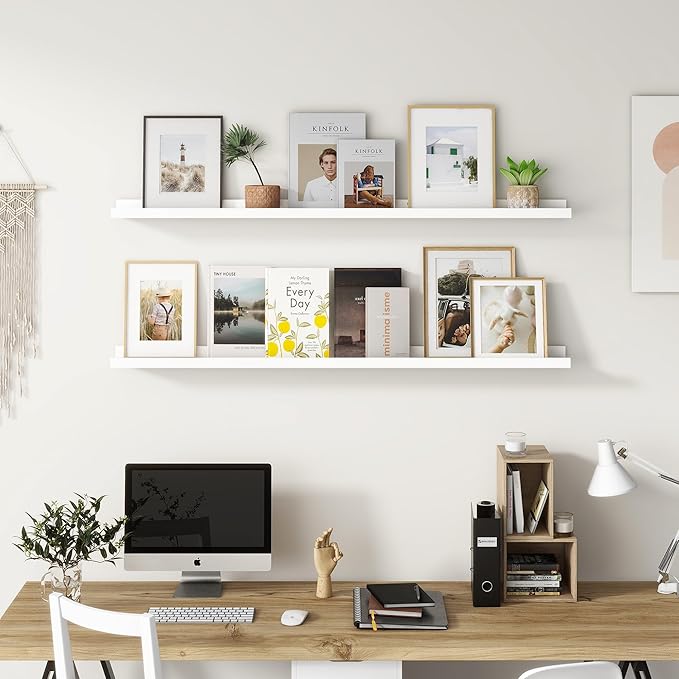 Picture Ledge Shelf for Wall, 36 inch Solid Pine Wood Nursery Book Shelves 2 Packs, Floating Ledge Shelves for Kids' Room Bedroom Bathroom Living Room Photo Frames Office Nursey Wall Decor, White