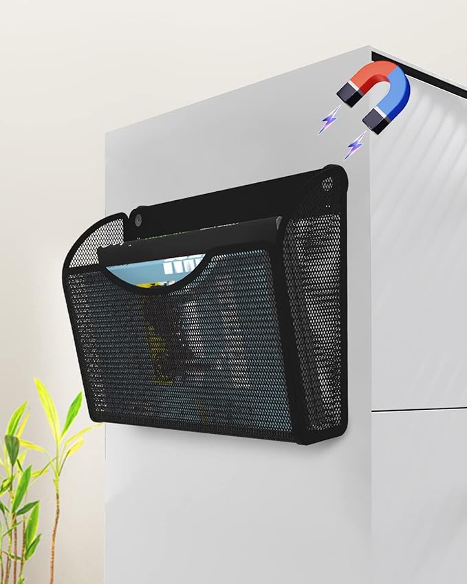 - MULTIPLE USES - You can put the magnetic file holder on the side of your filing cabinet, or on your refrigerator, whiteboard, etc. to reduce clutter on your desk and keep it tidy. It can also act as your magnetic mail holder,magnetic bill organizer, no more lost bills or mail