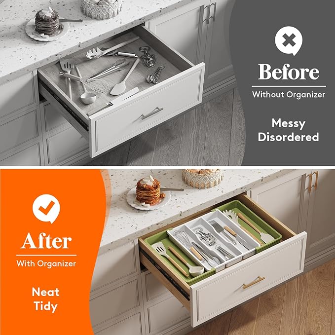 - Safe to Use: Crafted from BPA-free PP material, this cutlery drawer organizer guarantees the safety of all your utensils, silverware, and flatware. Cleaning is a breeze as well - simply rinse with water to remove stains.