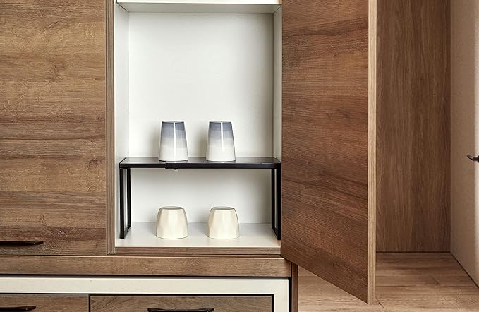 Nxconsu Cabinet Shelf Expandable Organizer Riser Rack for Kitchen Pantry Cupboard Under Sink Countertop Home Organization Extra Storage Space Saver Heavy Duty Metal Edgeless Design Black Large