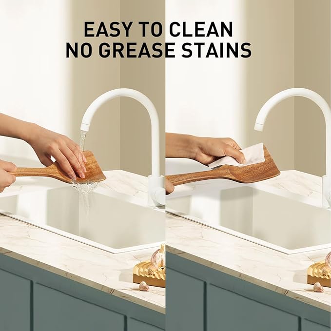 - Easy to Clean and Store: The surfaces of all our utensils are smooth without burrs so they won’t damage your cookware. Cleaning is easy with warm water or soapy water. Each tool has holes in the handle allowing it to be hung up on any standard-sized cutlery rack when not being used - providing convenient storage options for busy kitchens that are also stylish!