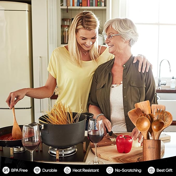 - Cooking Essentials: This 100% natural wooden utensil set is a must-have for any home chef. It includes multiple commonly-used kitchen tools and a kitchen utensil holder. Crafted by hand from high-quality, hard wood, these kitchen utensils are denser than any other materials available making them more robust and durable