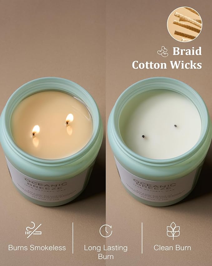 - ๐ณ Clean Consistent & Even Burn - Using 2 American made lead-free cotton wicks for a even burn result. They're cotton flat braid wicks with paper throughout, providing increased rigidity and burn more consistently than 100% cotton wicks. Designed to reduce carbon buildup which leads to black soot.