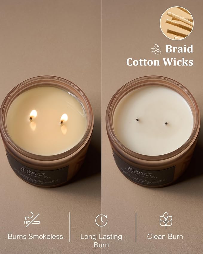 - ๐ณ Clean Consistent & Even Burn - Using 2 American made lead-free cotton wicks for a even burn result. They're cotton flat braid wicks with paper throughout, providing increased rigidity and burn more consistently than 100% cotton wicks. Designed to reduce carbon buildup which leads to black soot.