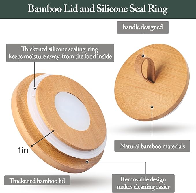 - Wide-mouth Jars - Kitchen canisters feature wide mouth design, easy to store and take out the food. Designed with bamboo lid and rubber gasket clamp to ensure a leak-proof and airtight seal, keep your food dry and fresh for a long time.