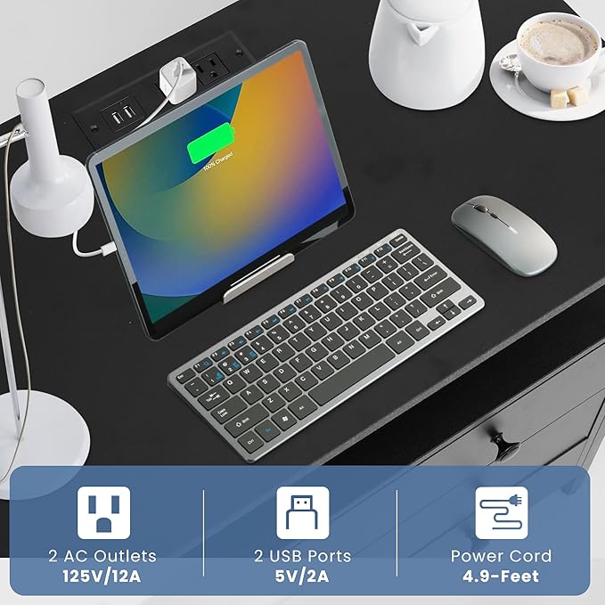 - 【Nightstand with Charging Station】The night stand comes with 2 outlets and 2 USB ports, and a 4.9-foot power cord. You can easily connect and charge electronic devices without needing extra extension cords or looking for available sockets. It provides a convenient charging place for your mobile phones, watches, desk lamps, Bluetooth headsets, and laptops, all within reach
