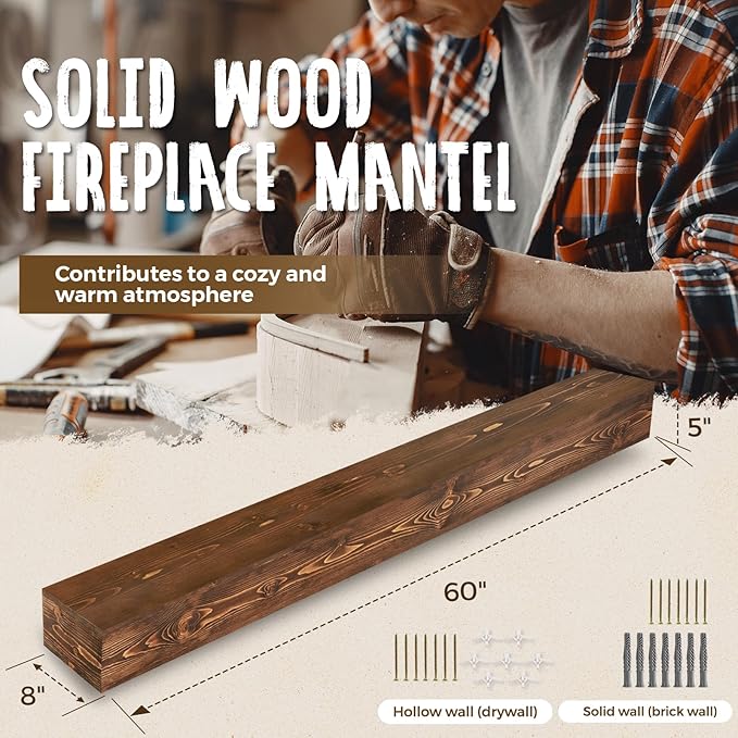 - Easy Installation: Our solid wood mantels come with hidden wood brackets, which can be easily fixed to the wall. Our hollow structure design ensures easy installation. The package includes installation instructions and two sets of accessories, compatible with hollow walls (drywalls) and solid walls (brick walls). For any installation issues, feel free to contact us at any time