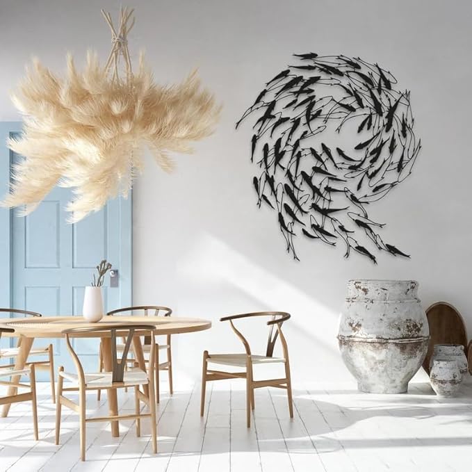 - LUXURY & DURABILITY UNITE: Crafted from high-quality and resilient metal materials, this school of fish metal wall decor is a testament to quality. This work of art, renowned for its durability, retains its elegance and sturdiness for years to come. It's a top-tier product that can grace both indoor and outdoor spaces.